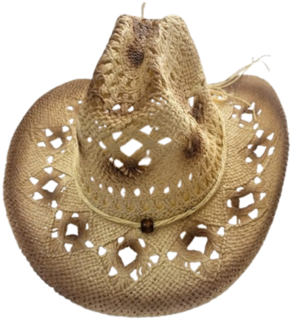 Sombrero cowboy de papel con cinta decorativa.